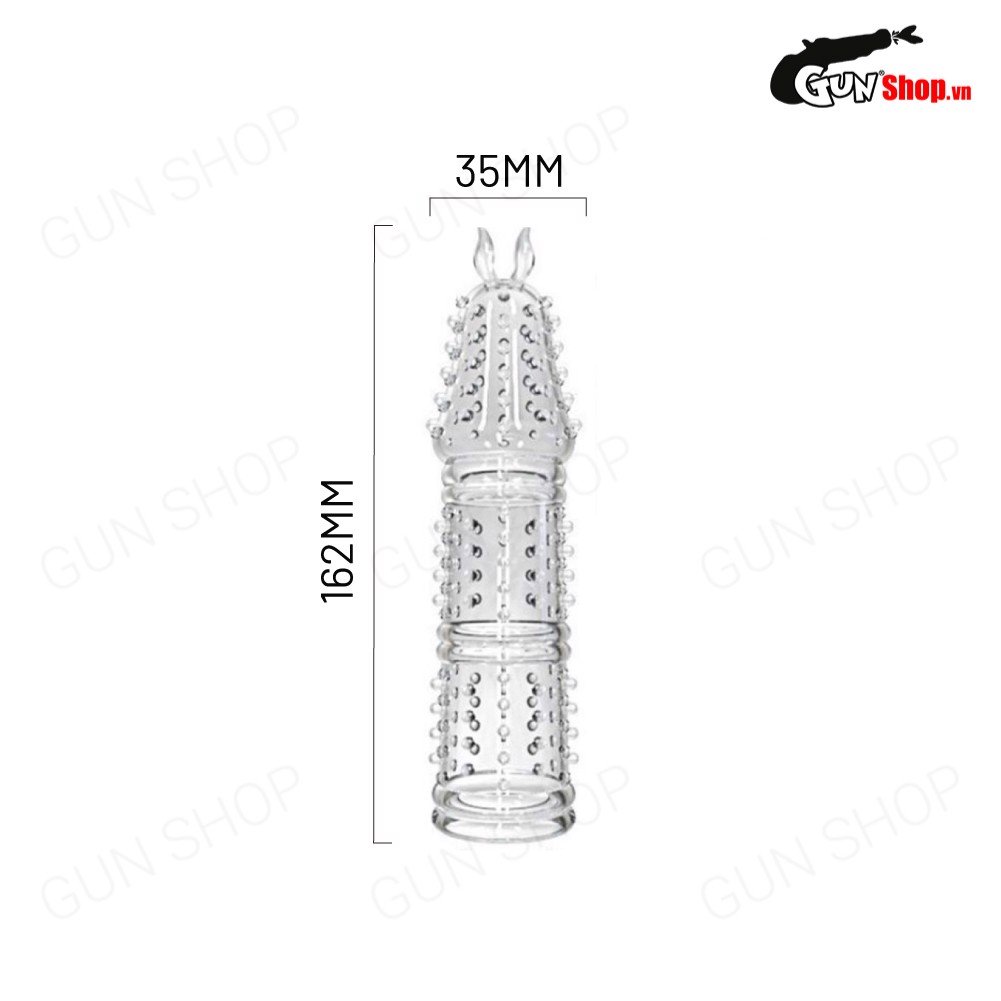 Bao cao su đôn dên Yeain Prime dài 16cm, phần đầu có tạo hình tai thỏ duyên dáng cùng thân bao phủ các gai nổi mềm mại, mang lại sự kích thích mạnh mẽ khi tiếp xúc với điểm G của phái đẹp. Màu trong suốt của bao giúp tăng tính thẩm mỹ và tự nhiên khi sử dụng. Thiết kế thon dài ôm vừa vặn "cậu nhỏ", giúp tăng kích thước hiệu quả mà vẫn rất dễ chịu khi quan hệ.