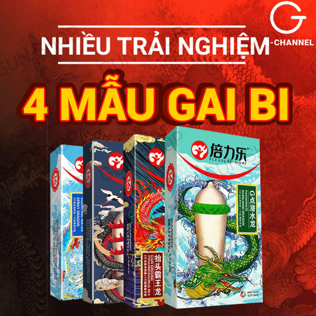 Bao cao su Dragon gây ấn tượng với 4 mẫu gai bi khác nhau, mỗi kiểu gai mang đến một trải nghiệm đặc biệt. Những sợi gai mỏng mềm mại vuốt ve tinh tế sẽ tác động lên thành âm đạo và điểm G, giúp phái nữ nhanh chóng chạm đỉnh. Thiết kế xoắn quanh phần đầu bao cũng tăng thêm sự kích thích, khiến cảm giác càng thêm mãnh liệt và khó quên.