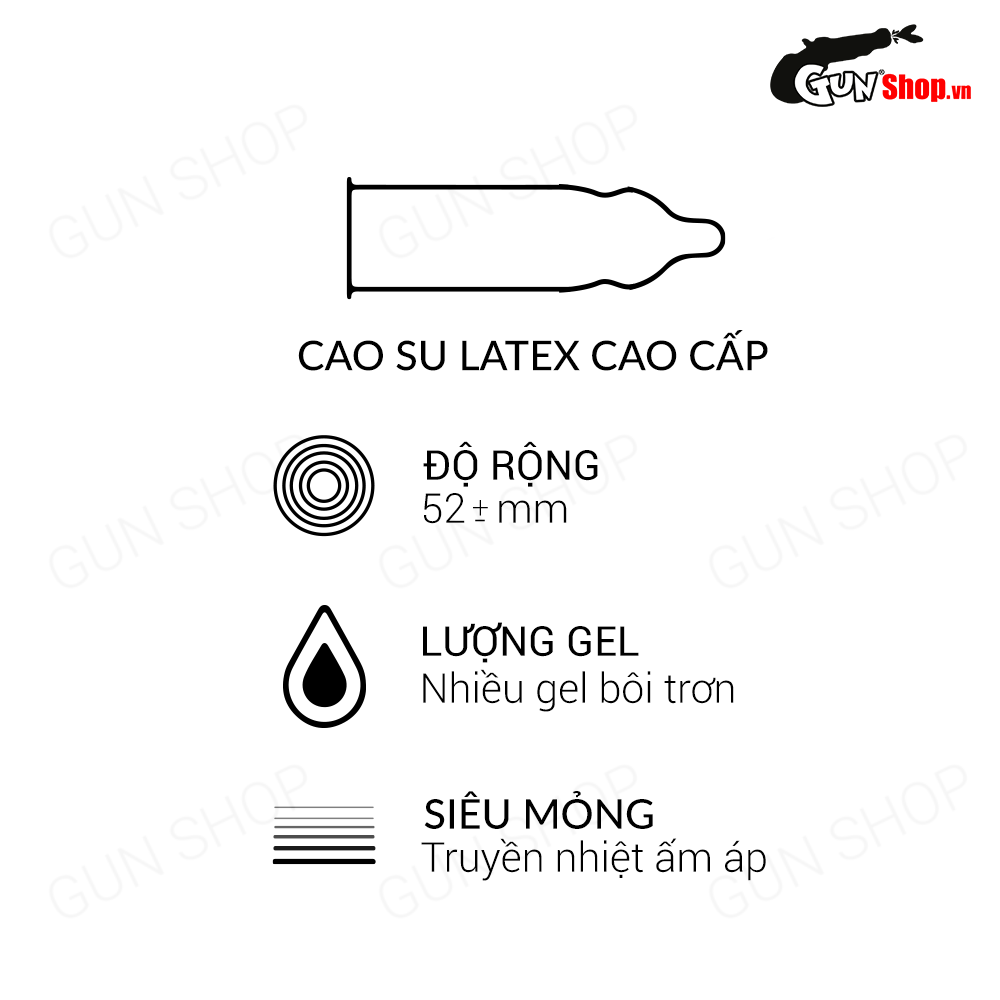 Gel bôi trơn: Được bổ sung với lượng lớn, giúp tăng sự mượt mà khi quan hệ.