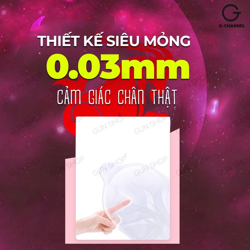 Độ mỏng: Siêu mỏng 0.03mm, mang lại cảm giác nhẹ nhàng, ôm sát tự nhiên.