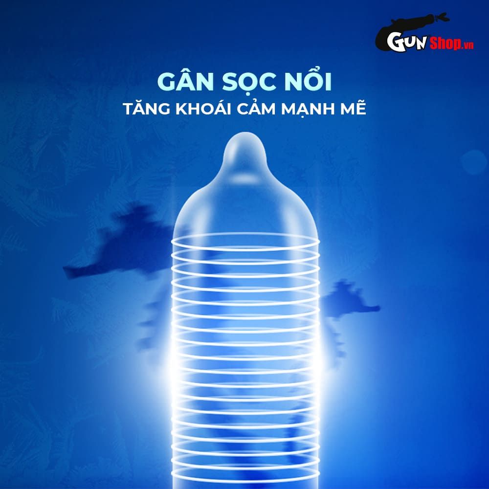 Thiết kế bao có các đường gân và xoắn ốc nổi đặc sắc giúp kích thích điểm G, nâng cao khoái cảm cho cả nam và nữ. Chất liệu mượt mà cùng tinh chất bạc hà tạo cảm giác mát lạnh sảng khoái, khuấy động cảm xúc thăng hoa. Đặc biệt, bạc hà còn giúp át đi mùi khó chịu, giữ không khí yêu luôn tươi mới và thoải mái.