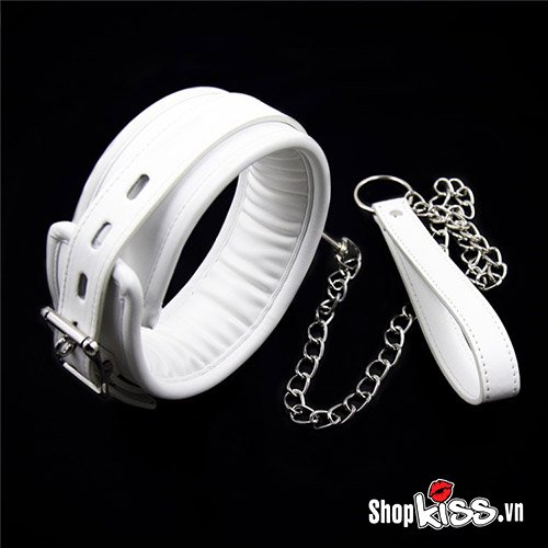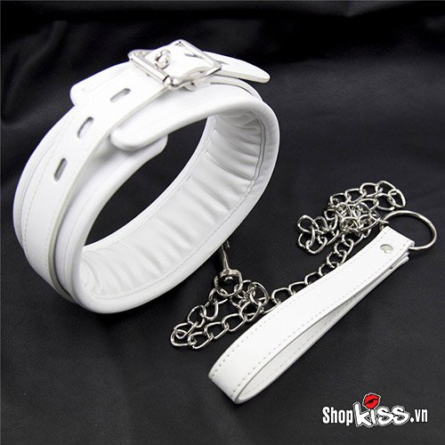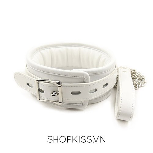 Tên sản phẩm: Xích Cổ Da Màu Trắng Có Đệm