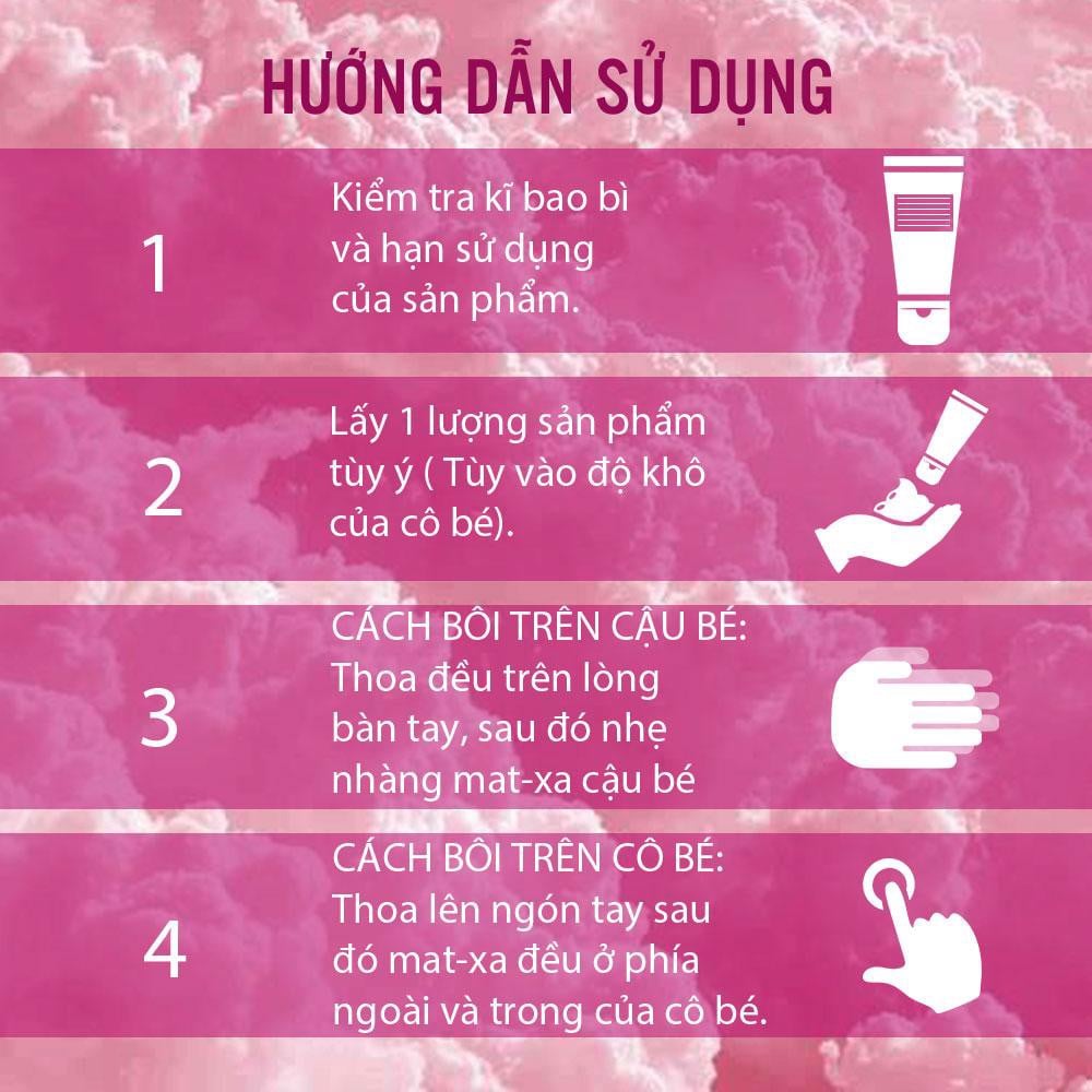 Lắc đều chai trước khi dùng để đảm bảo gel được pha trộn đều. Lấy lượng gel vừa đủ ra tay rồi nhẹ nhàng thoa và massage bên ngoài âm đạo để kích thích tuần hoàn và lưu thông máu. Sản phẩm giúp tạo cảm giác thoải mái, tăng hưng phấn cho cả hai bên. Sau khi quan hệ, chỉ cần rửa sạch với nước, không gây bết dính hay khó chịu.