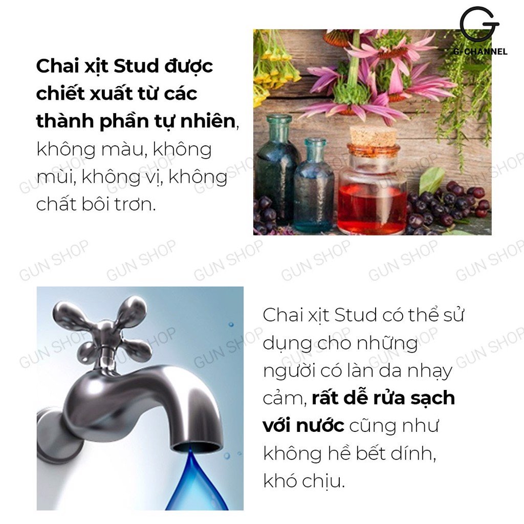 Chai xịt chống xuất tinh sớm Stud 100 – giải pháp hoàn hảo cho quý ông muốn kéo dài thời gian yêu và thể hiện bản lĩnh phái mạnh. Sản phẩm đến từ Anh Quốc, đã được kiểm định nghiêm ngặt bởi FDA, là lựa chọn tin cậy và phổ biến trên hơn 60 quốc gia trong suốt hơn 50 năm qua. Stud 100 giúp kiểm soát khả năng xuất tinh, mang lại cuộc “yêu” viên mãn, thăng hoa hơn. Thiết kế nhỏ gọn, tiện lợi, dễ dàng mang theo bên mình mọi lúc mọi nơi, trở thành trợ thủ đắc lực trong những khoảnh khắc cần thiết.