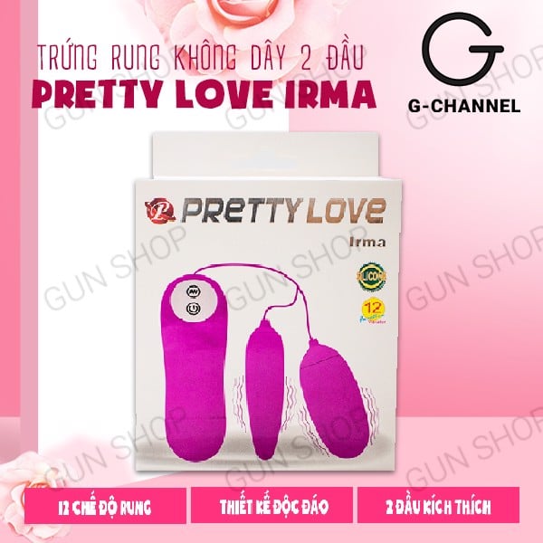 Trứng rung 2 đầu 12 chế độ rung dùng pin - Pretty Love Irma là sản phẩm hỗ trợ tình dục cao cấp dành cho phái nữ, mang đến trải nghiệm thăng hoa và an toàn tuyệt đối. Với thiết kế thông minh và chất liệu y tế mềm mịn, trứng rung này giúp chị em dễ dàng khám phá và tận hưởng những giây phút tuyệt vời.