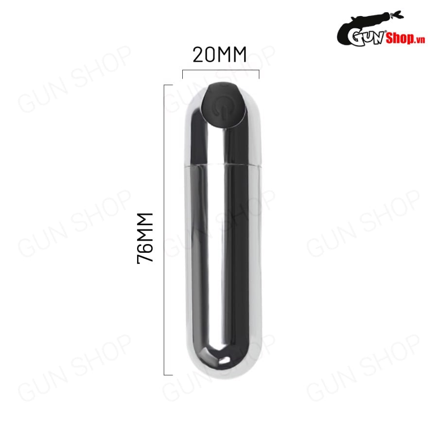 Yeain Mini Vibrator có hình dáng viên đạn nhỏ nhắn với kích thước 76mm x 20mm, vô cùng tiện lợi để mang theo trong túi xách hoặc ngăn kéo mà không tốn diện tích. Chất liệu inox 304 không gỉ cao cấp tạo nên vẻ sang trọng và độ bền vượt trội, đảm bảo an toàn cho sức khỏe và cảm giác mềm mại khi tiếp xúc.