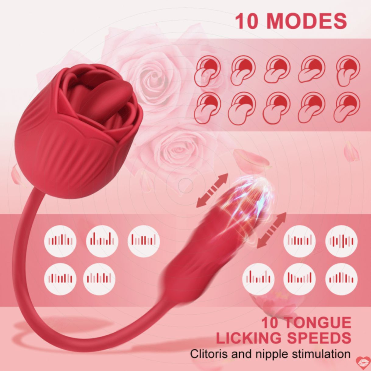 Trứng rung hoa hồng rung thụt mạnh kèm lưỡi liếm massage điểm G là sản phẩm sextoy cao cấp, đỉnh cao dành cho phái nữ muốn trải nghiệm khoái cảm tối đa. Sát cánh cùng bạn trong mọi giây phút thư giãn, trứng rung hoa hồng tích hợp nhiều chức năng độc đáo, giúp kích thích điểm G và âm vật một cách hoàn hảo. Đây thực sự là món quà tuyệt vời cho các chị em hiện đại, muốn tăng cường cảm xúc và thăng hoa cuộc sống tình dục.